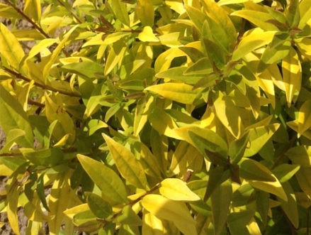 Бирючина золотистая — листопадный, густоветвистый кустарник до 5 метров высотой. Листья продолговато-яйцевидные или ланцетные, голые, кожистые, сверху темно-зеленые, снизу светлее. Цветки мелкие, белые, душистые, в густых стоячих метелках до б сантиметров длиной. Цветет в первой половине лета на протяжении 20-25 дней. В молодости растет быстро, довольно морозостойка, выдерживает кратковременное понижение температуры до -30°С, засухоустойчива, мирится с разными типами почв, хорошо растет на почвах, содержащих известь, даже выносит небольшое засоление.
