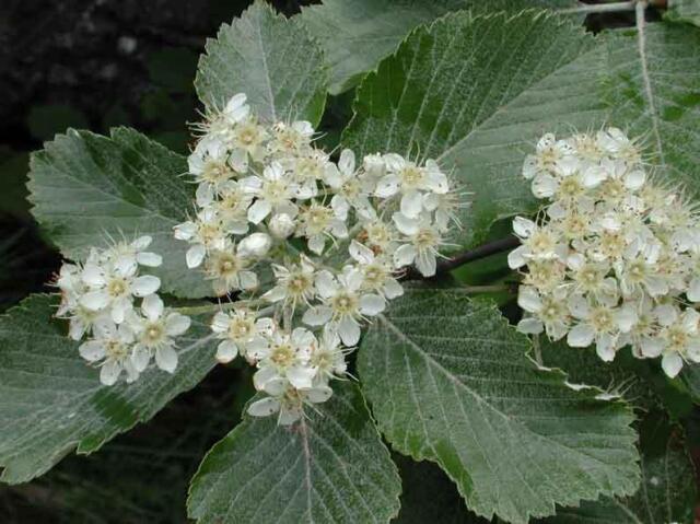 Многолетнее дерево высотой 10-15 метров. Светолюбиво, обычно растёт одиночно, на хорошо освещённых участках. Листья рябины круглолистной, в отличие от рябины обыкновенной, цельные, округло-эллиптические, кожистые, по окраске зелёные сверху и беловойлочные снизу. Цветки белые, крупные, собраны в щитковидные соцветия. Плоды красновато-оранжевые, с мучнистой мякотью, съедобные.